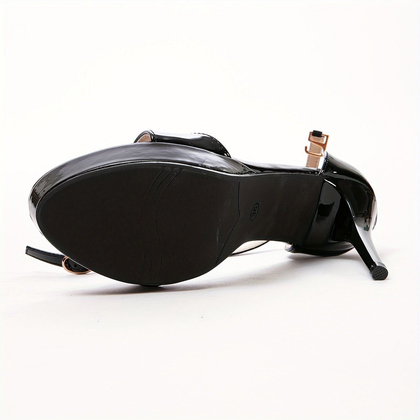 Elegant Black Open-Toe Stiletto Sandals for Women - Summer 2024 Collection, Sexy Ankle Strap High Heels with Glossy Finish & Rubber Sole, Versatile Platform Dress Shoes